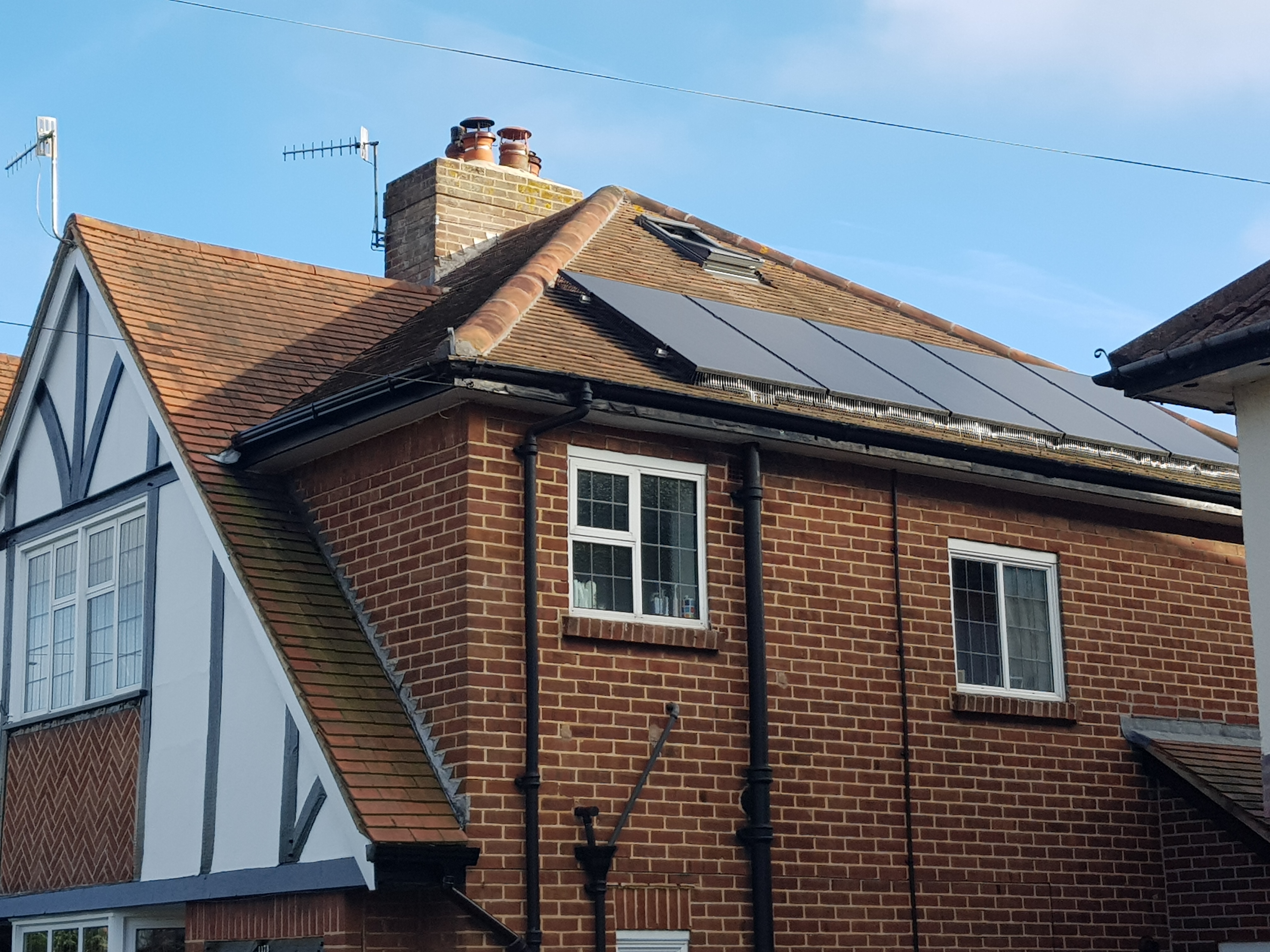 We have installed 9 solar panels which can produce 3.09 Kw. We have three batteries capable of storing 7Kw. The electricity produced is used to charge up our electric vehicle via a Zappi charger, and the stored electricity in the batteries runs the home at night.