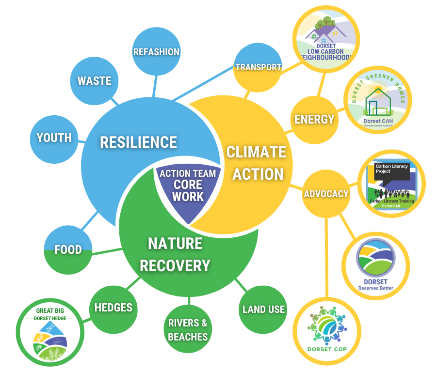 Dorset CAN works to inform, help and encourage families, businesses and individuals across the county to 'do their bit' to reduce their carbon footprint and minimise our contribution to the climate and nature crisis. We also work to engage with and encourage Dorset Council and BCP Council to 'do their bit' to make this happen.