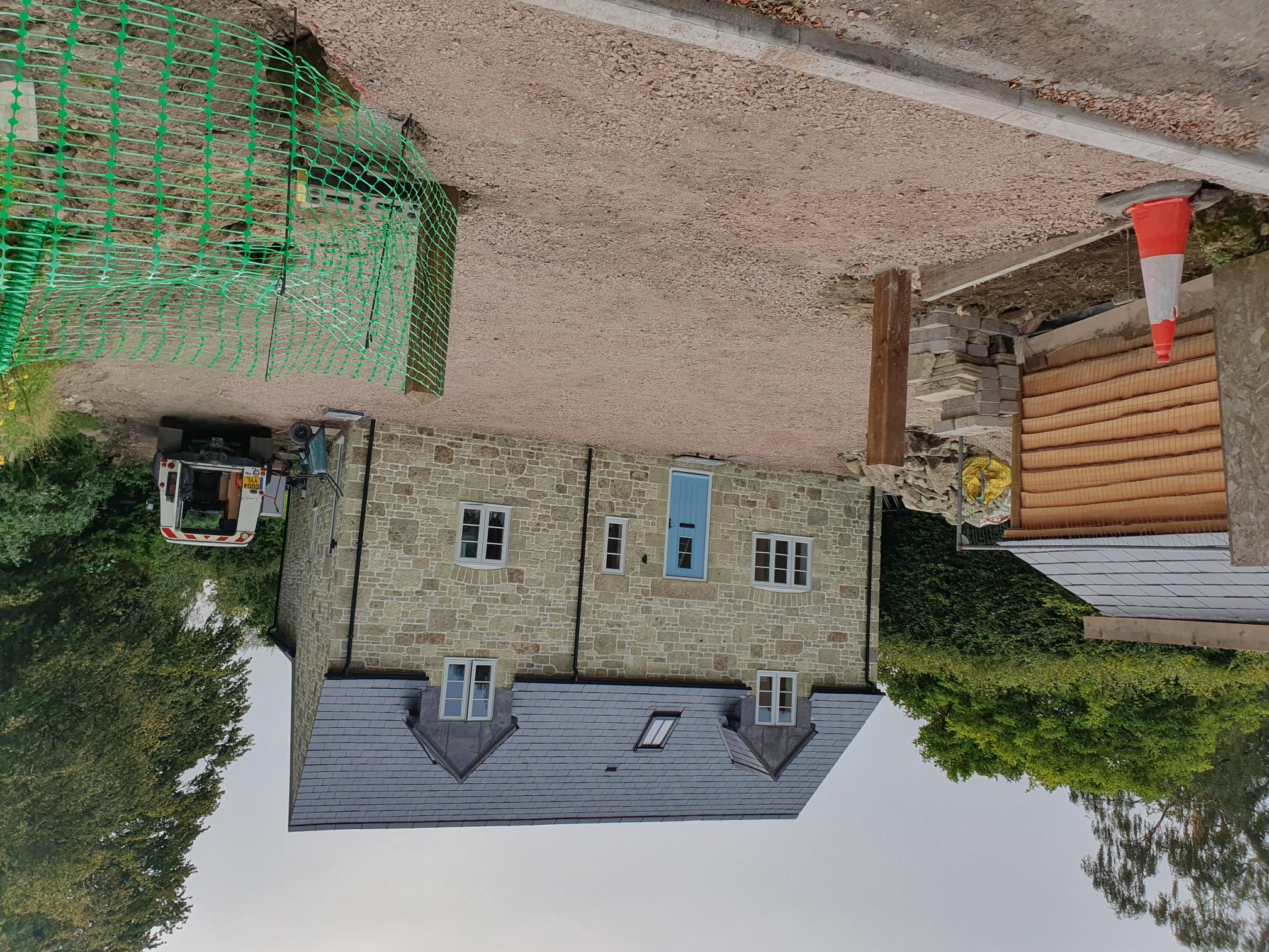 This newly built house is built of reclaimed (recycled!) local natural stone, very nearly finished! As you can see from the image it is a traditional looking cottage.