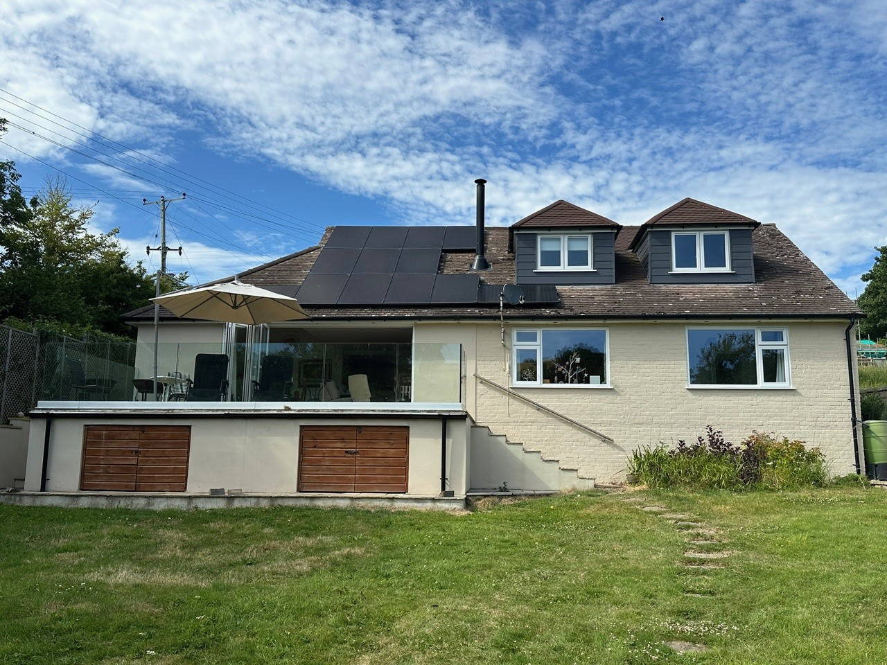 1950s chalet bungalow fully refurbished in 2020 with removal of gas boiler and retro fitting of PV panels, air source heat pump and EV charger.