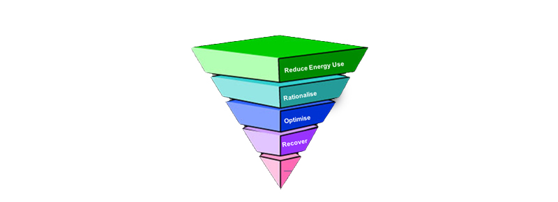 As the pyramid shows, the first stage is to Reduce energy use – from simple tips like improving the controls on your heating to eliminating draughts. Click here for an in-depth article about how to reduce your energy Bills. It makes sense to reduce your heat losses as much as possible before you install new heating systems - but in some homes that is difficult. You home does not have to be perfectly insulted to install a heat pump, say.